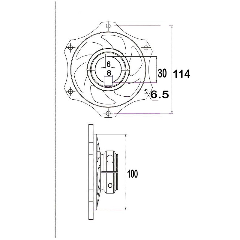 Voor as van 30mm diameter. Spie 6 en 8mm